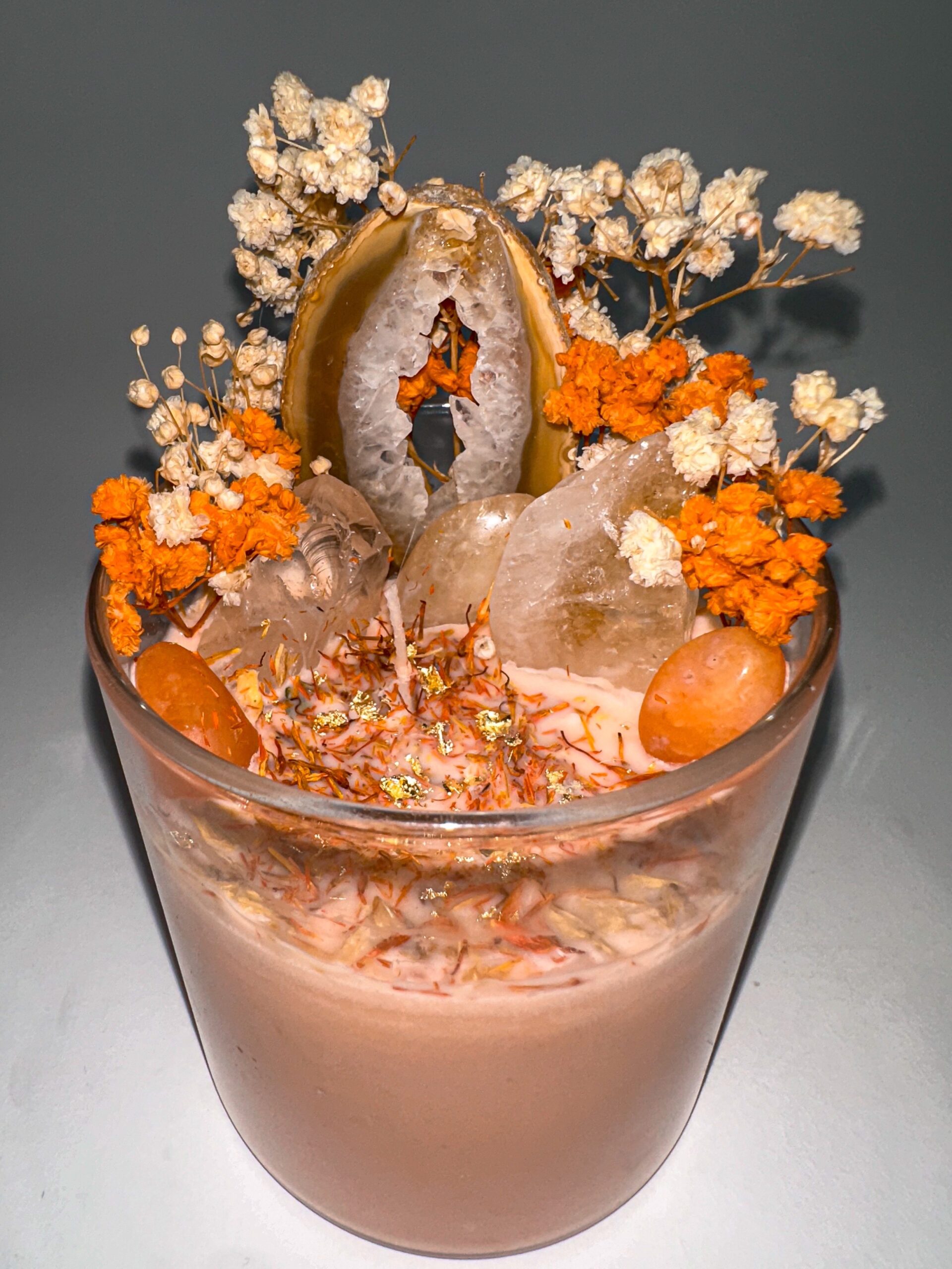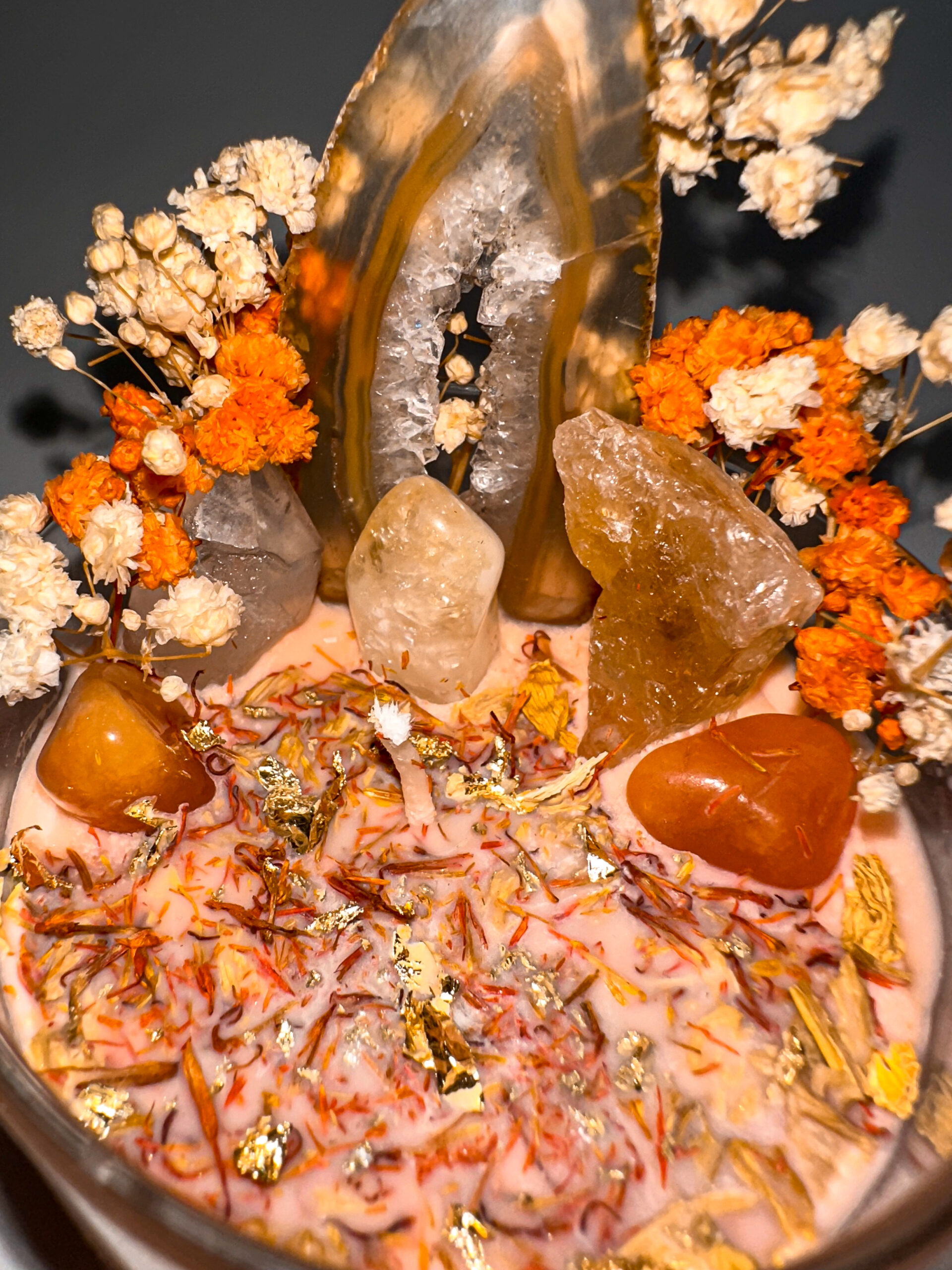 Hogyan Használd? Gyújtsd meg a gyertyát egy csendes pillanatban, és engedd, hogy az illatok, kristályok és gyógynövények energiája átjárjon. Koncentrálj a kívánt célodra – legyen az a belső béke, a pozitív életszemlélet, vagy az öröm és boldogság bevonzása. Vizualizáld, ahogy a gyertya fénye a kívánságaidat bevonzza és megerősíti. Ajánlott szándék: boldogság, pozitív energia, lelki derű.