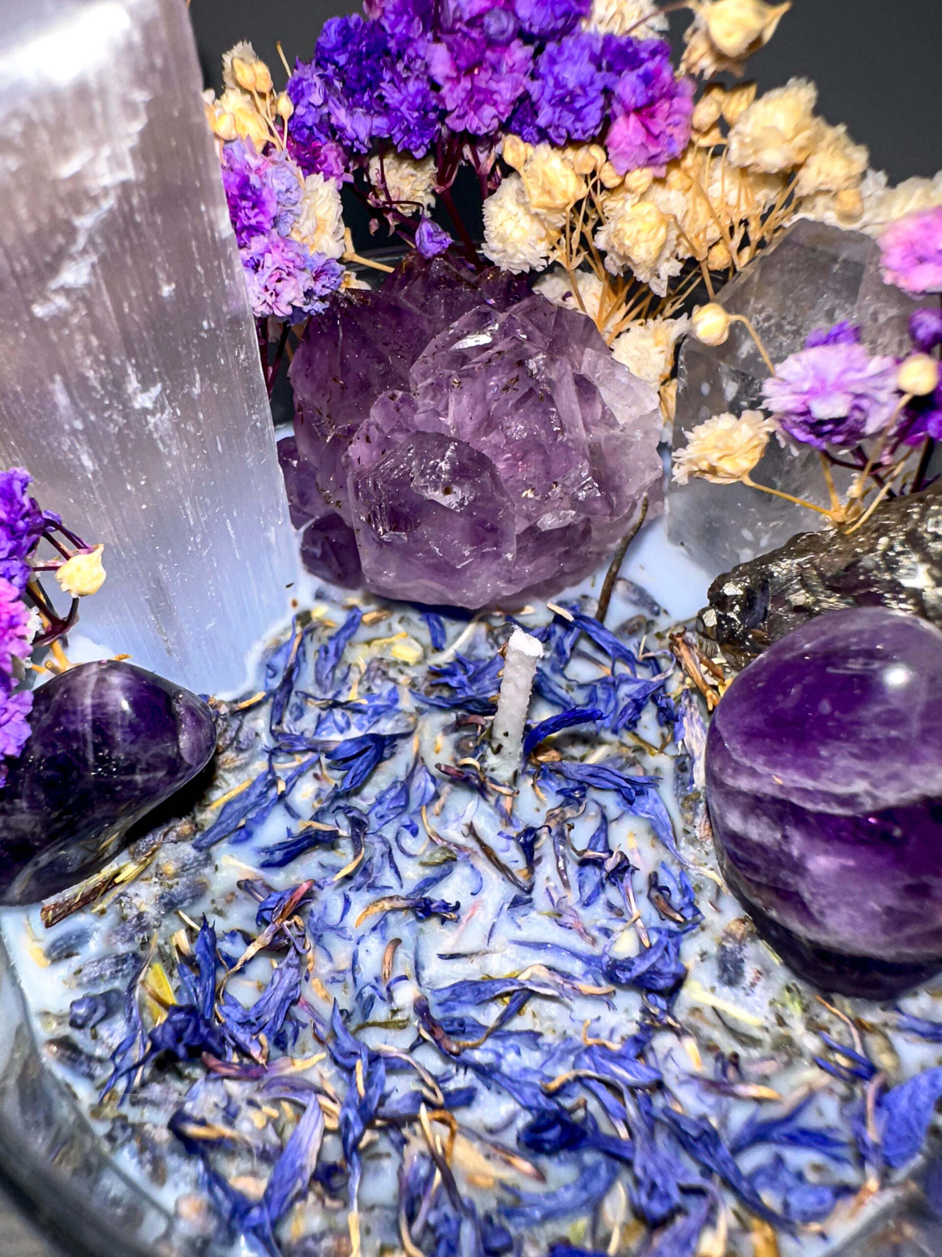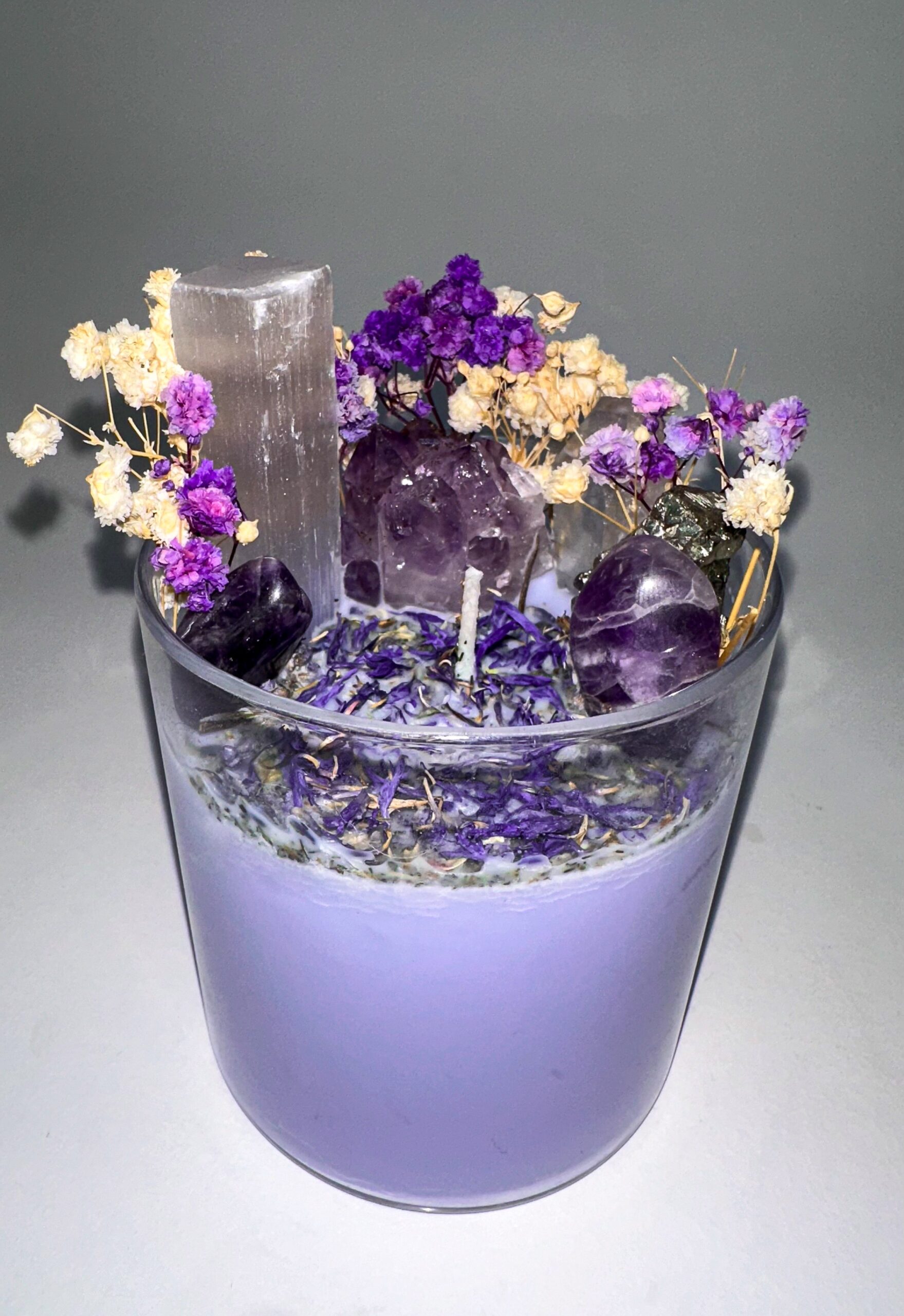 Ametiszt: Az ametiszt a spirituális növekedés kristálya, amely megnyitja az intuíció kapuit és segíti a mélyebb meditációt. Nyugtatja az elmét, és támogatja a belső béke elérését. • Szelénit: Ez a kristály tisztító és energiamegújító hatású, segít kapcsolatot teremteni a magasabb spirituális síkokkal. Támogatja a belső békét és harmóniát, és eloszlatja a negatív energiákat.
