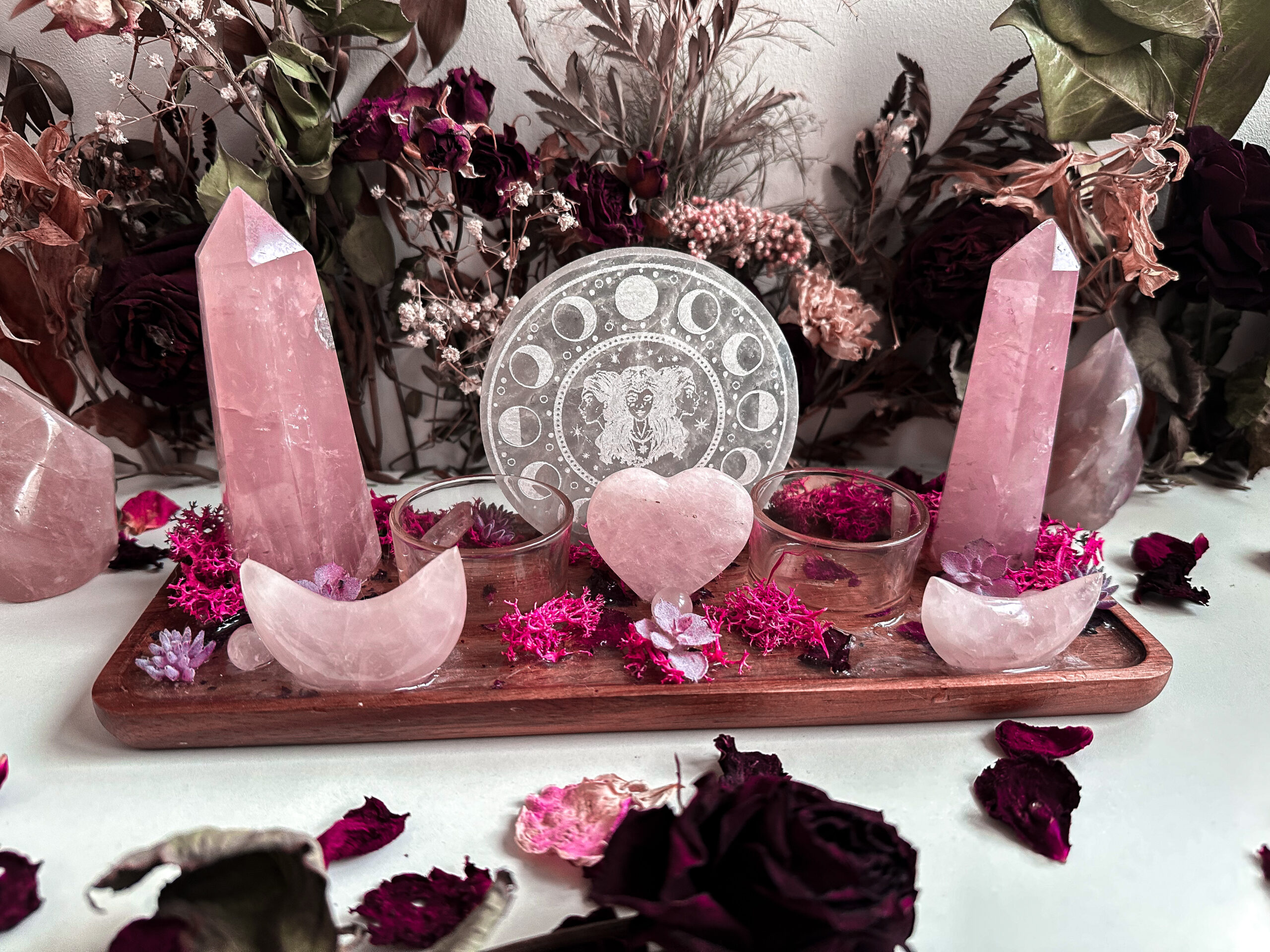 Rózsakvarc: A feltétel nélküli szeretet, együttérzés és gyengéd kapcsolódás köve; segíti a szerelem bevonzását és a szívcsakra megnyitását.